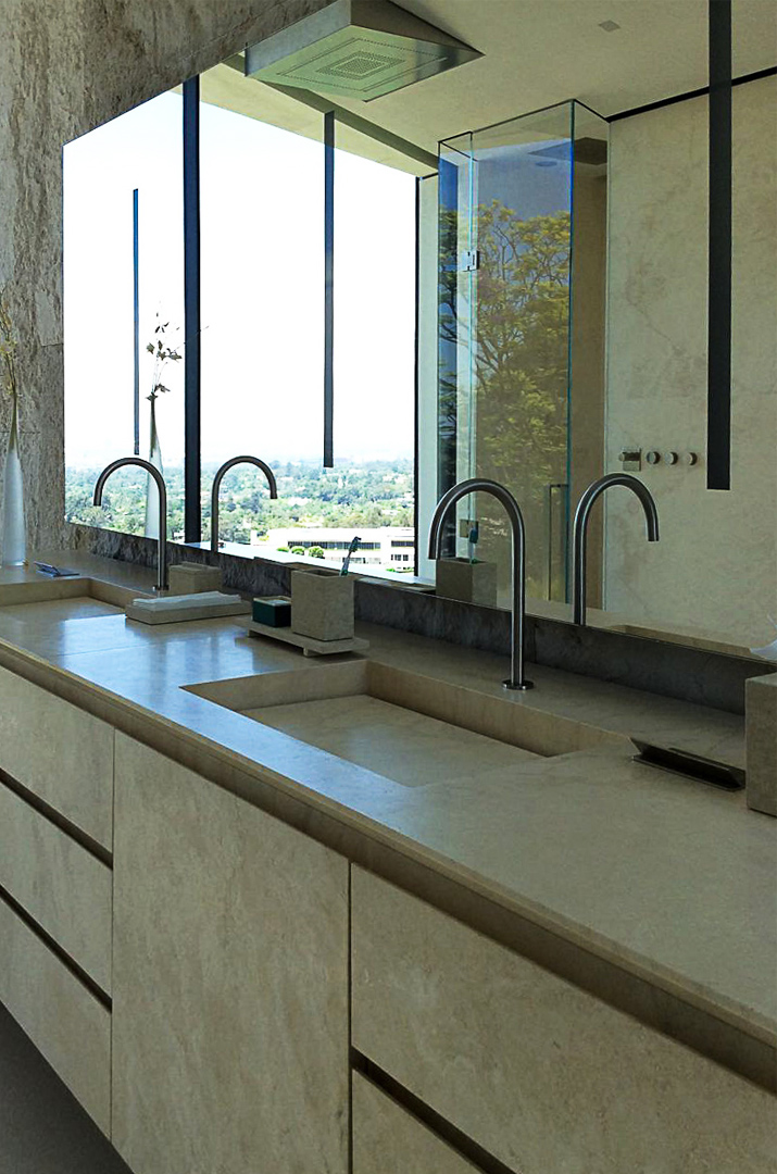 Пьетре ди Раполано позаботился обо всех технических чертежах, необходимых для обработки и производства, а также цельной каменной ванны , плит обшивки мебели и пол с большой плиткой .