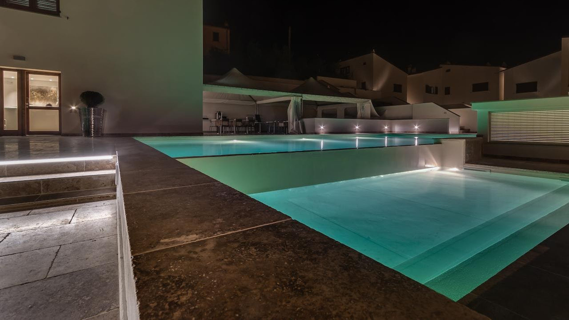 Каждый бассейн является необычным центром внимания, который не должен конкурировать с ландшафтом и архитектурой, которые его окружают. В частности, край бассейна — это элемент, который отмечает переход между внутренним и внешним пространством: это место приземления для тех, кто находится в воде, и идеальный «трамплин» для тех, кто находится снаружи.