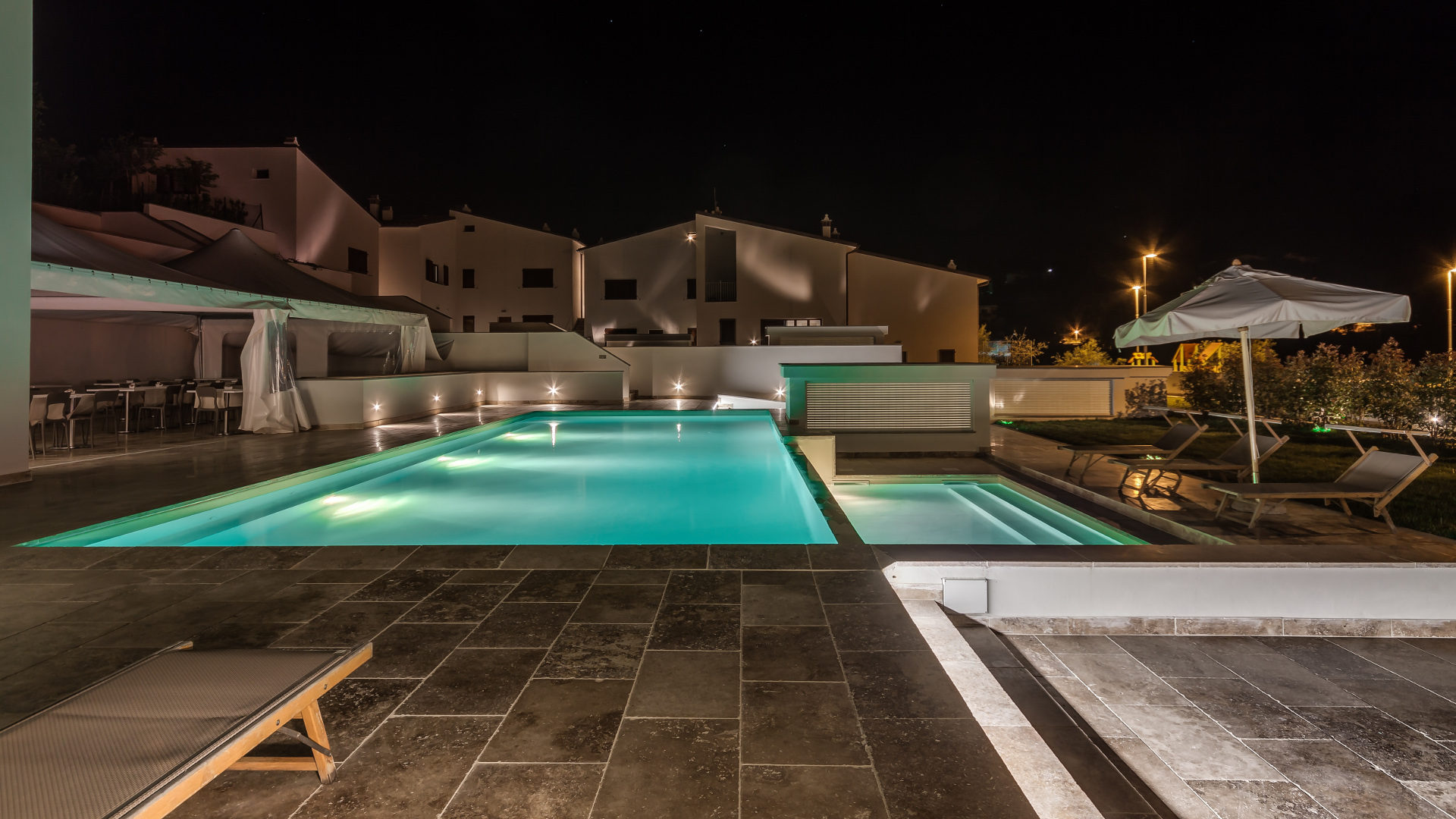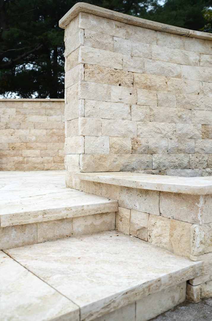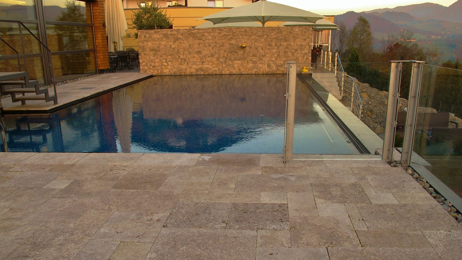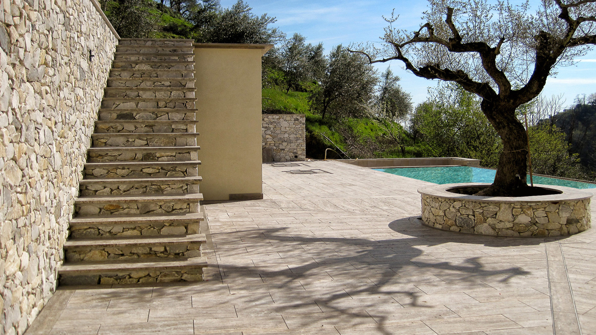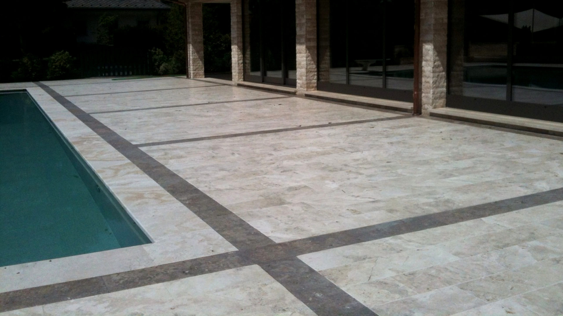 Травертин устойчив , легко переносит экстремальные погодные колебания и имеет естественно нескользкую текстуру : все эти характеристики гарантируют, что он не меняется с течением времени, и делают его идеальным для окружающая среда, близкая к воде.