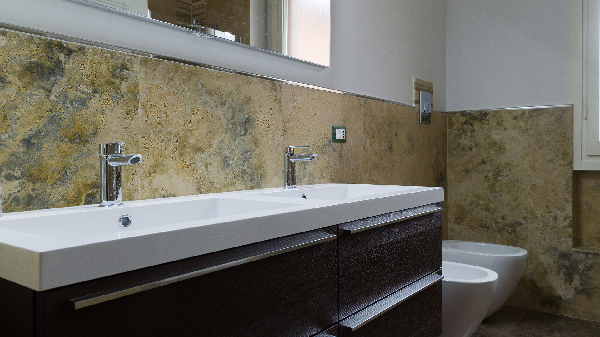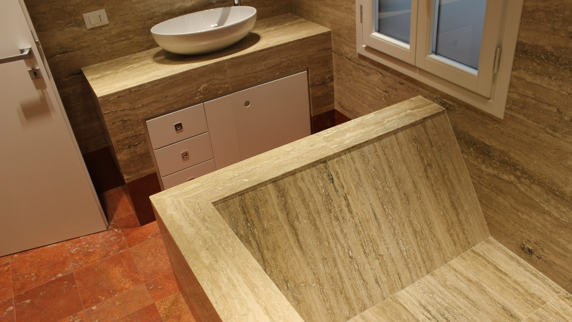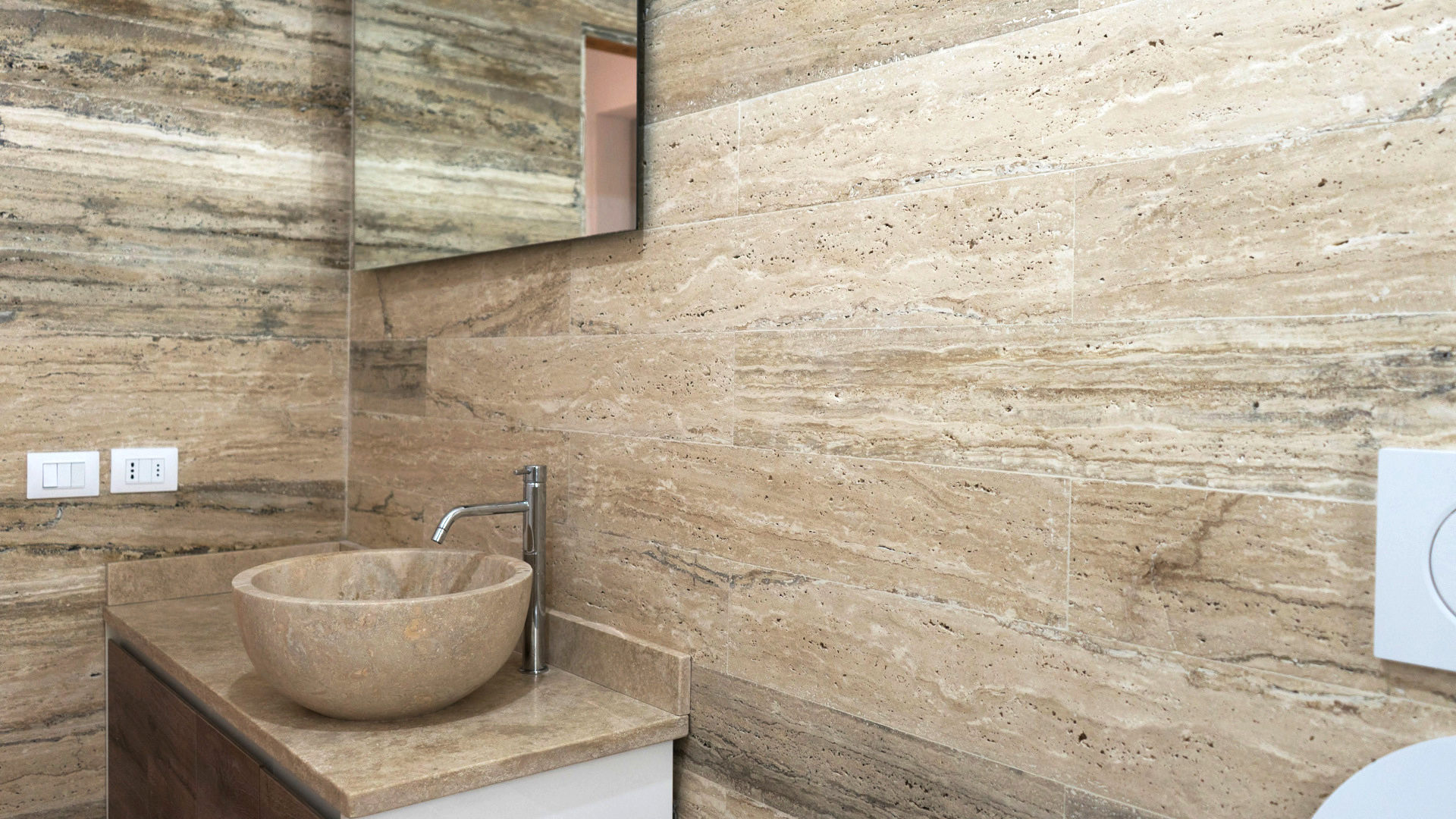В дополнение к полу и для умывальники , травертин — идеальный выбор для облицовки ванной комнаты: идеальное сочетание природы, мастерства и технологий. Благодаря своему составу он водостойкий, не трескается, не скользит даже во влажном состоянии, и для его очистки их достаточно нейтральные продукты .
