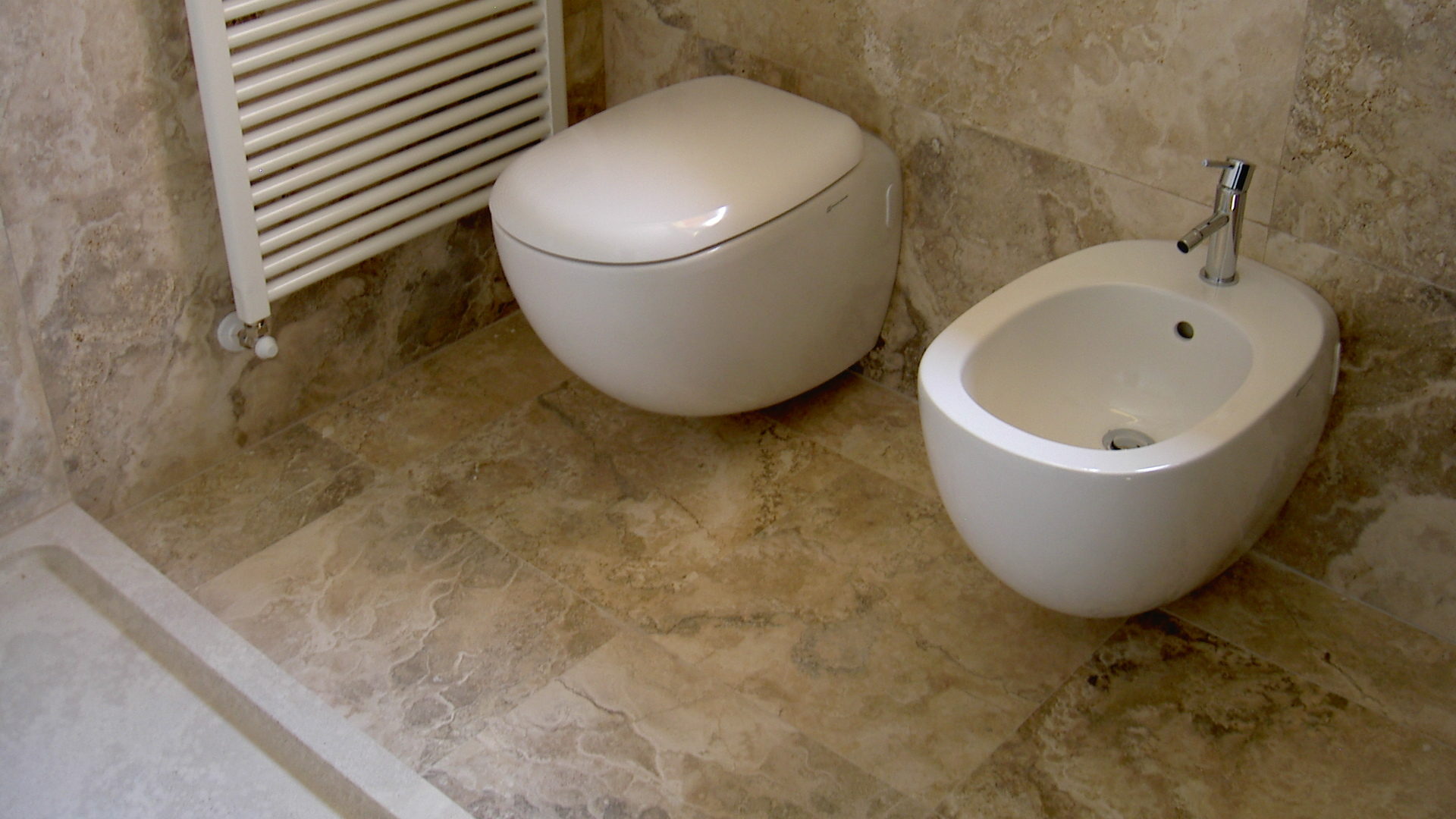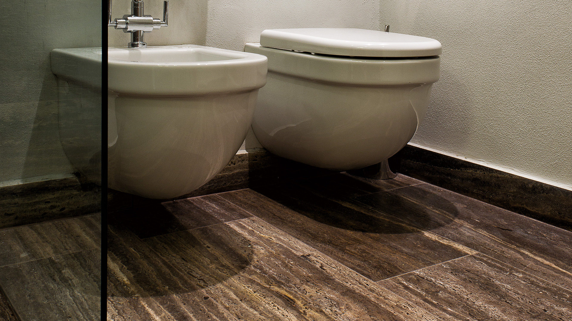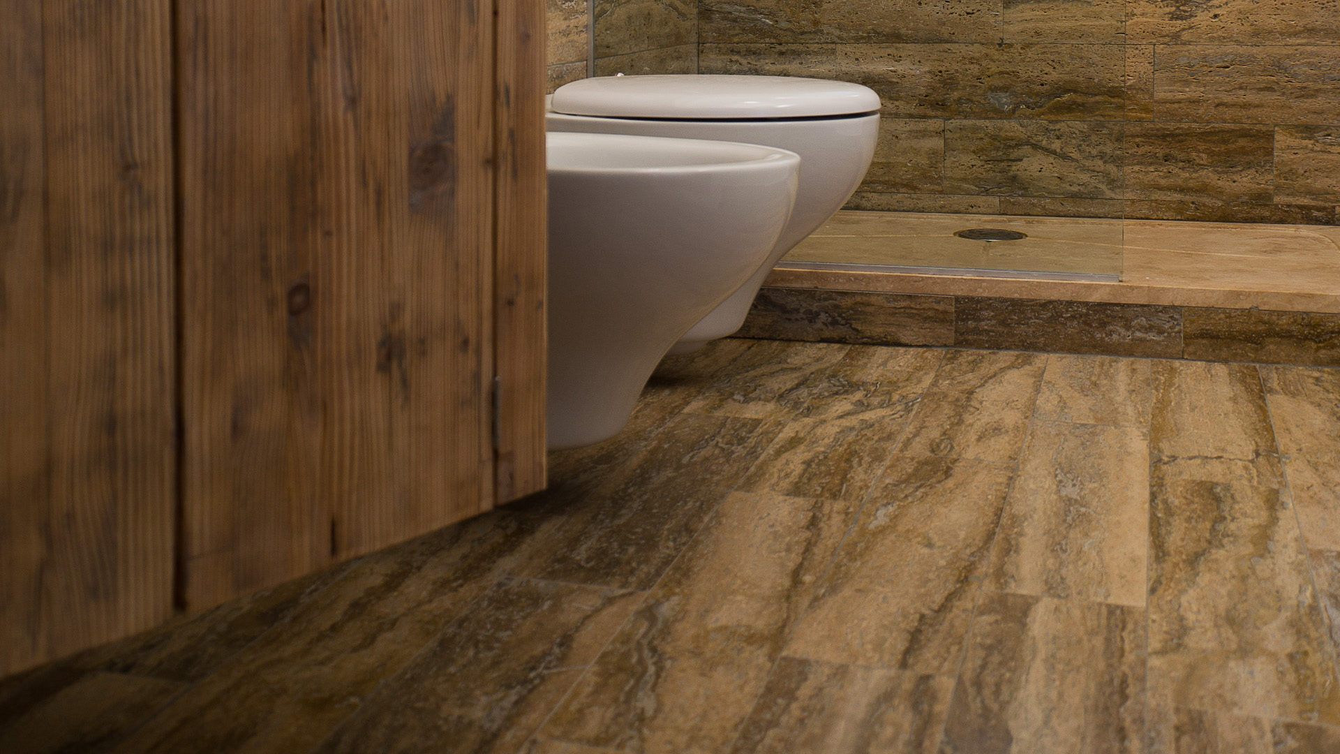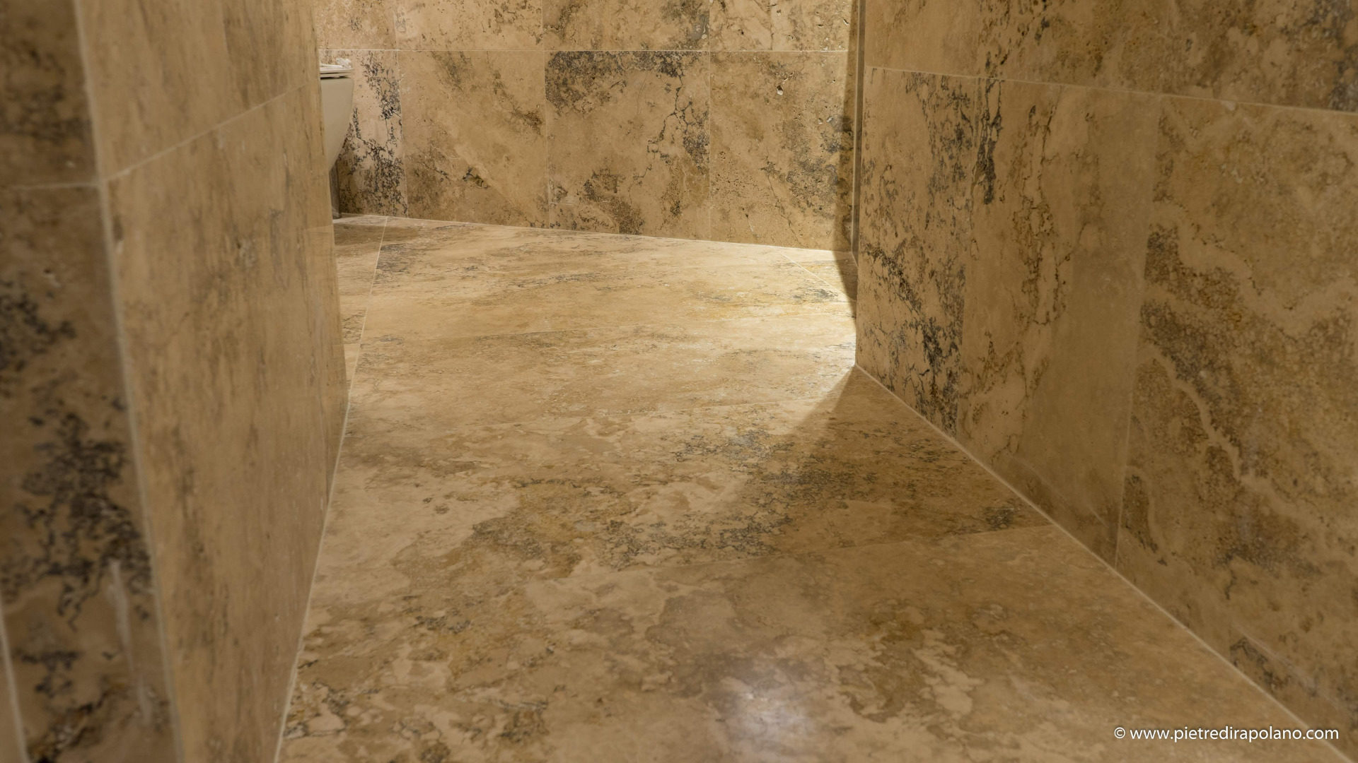 Травертин — идеальный материал для использования в ванной, так как он рождается в воде в результате осаждения известняковых отложений: по этой причине его можно использовать во всех средах, контактирующих с этим элементом. Его превосходство очевидно с точки зрения красоты, гигиены, долговечности и экологичности.