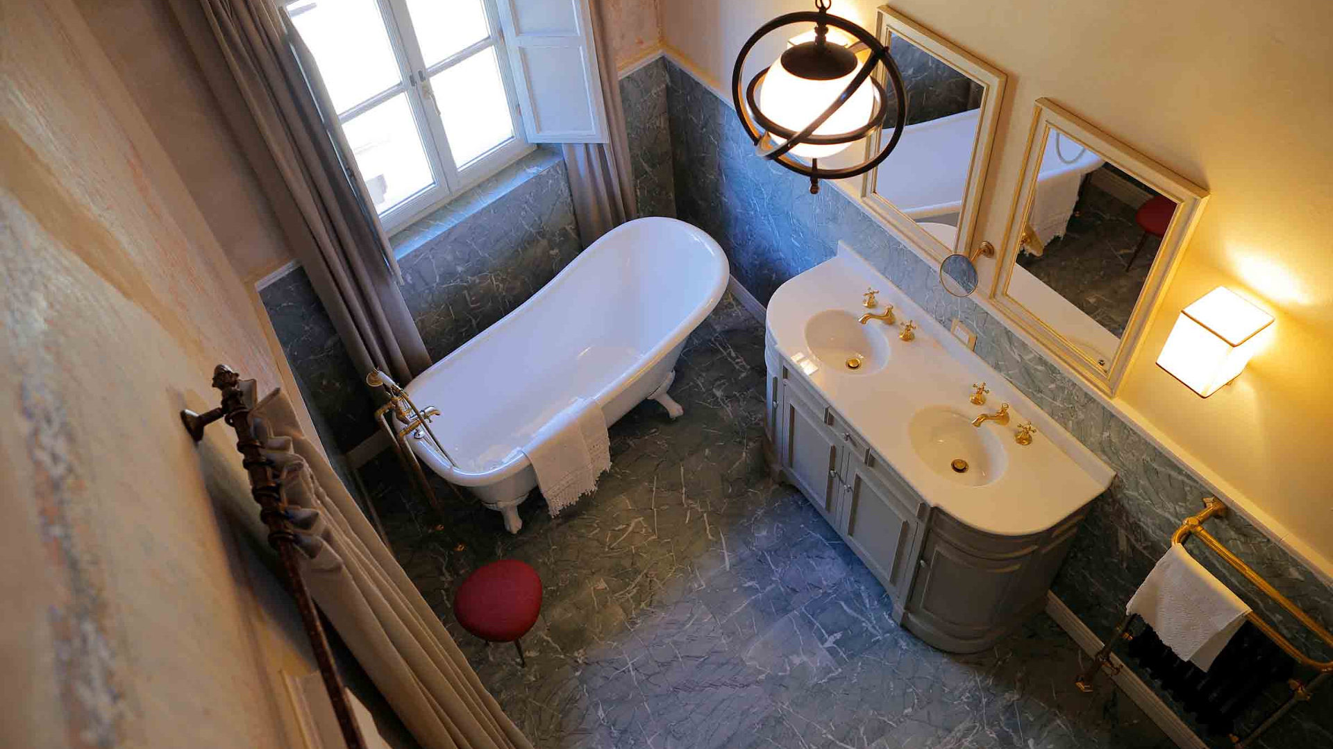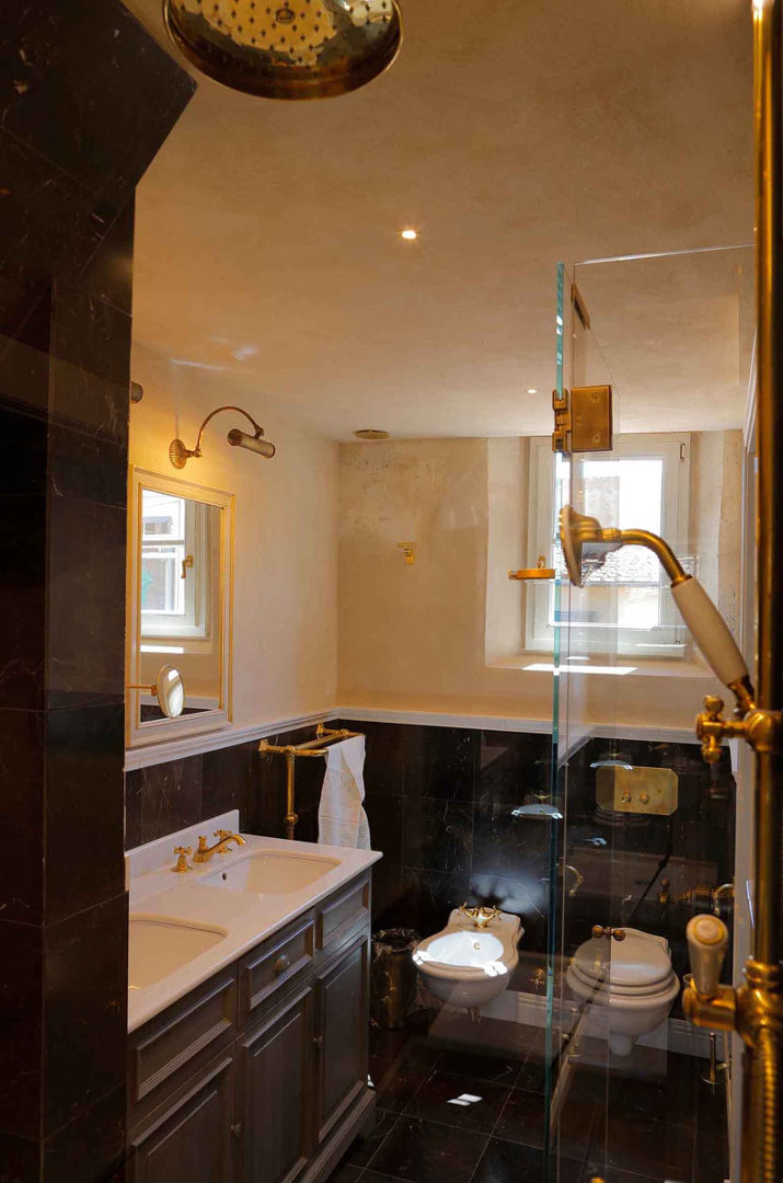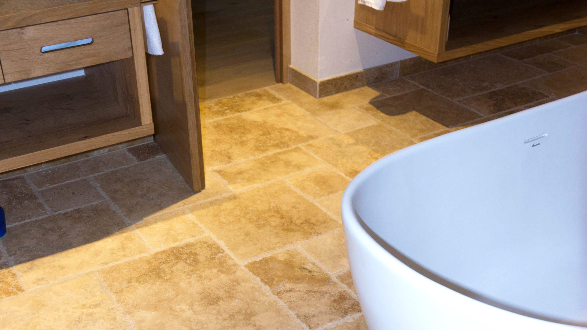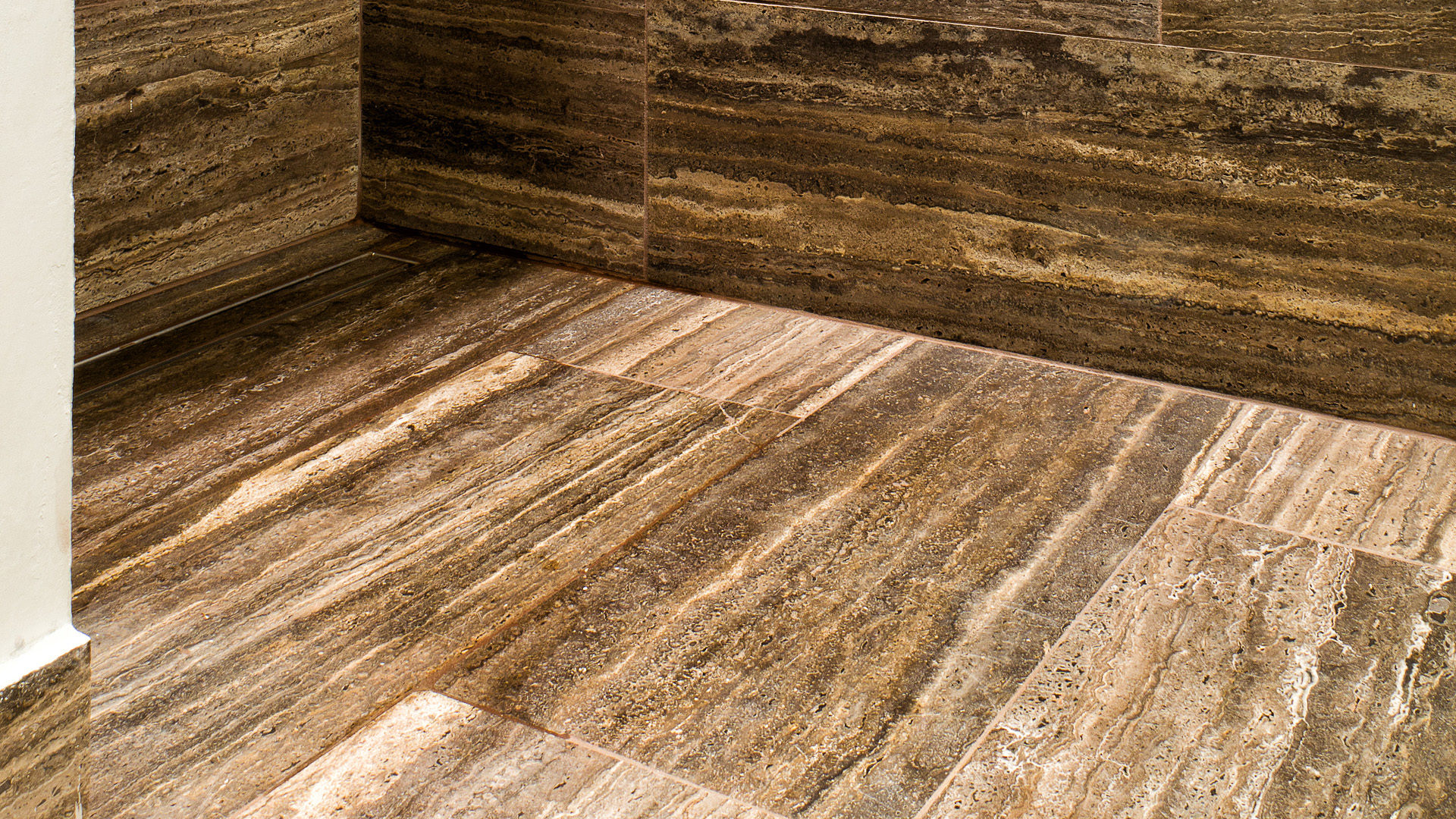 Травертин — идеальный материал для использования в ванной, так как он рождается в воде в результате осаждения известняковых отложений: по этой причине его можно использовать во всех средах, контактирующих с этим элементом. Его превосходство очевидно с точки зрения красоты, гигиены, долговечности и экологичности.