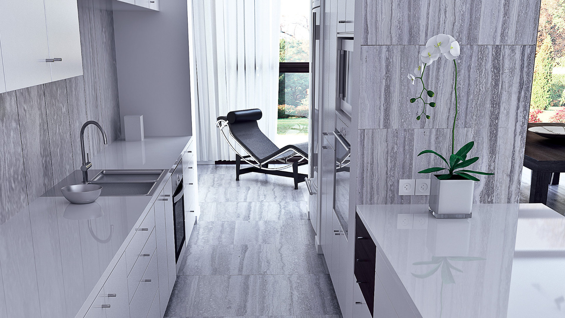 Покройте кухню травертином