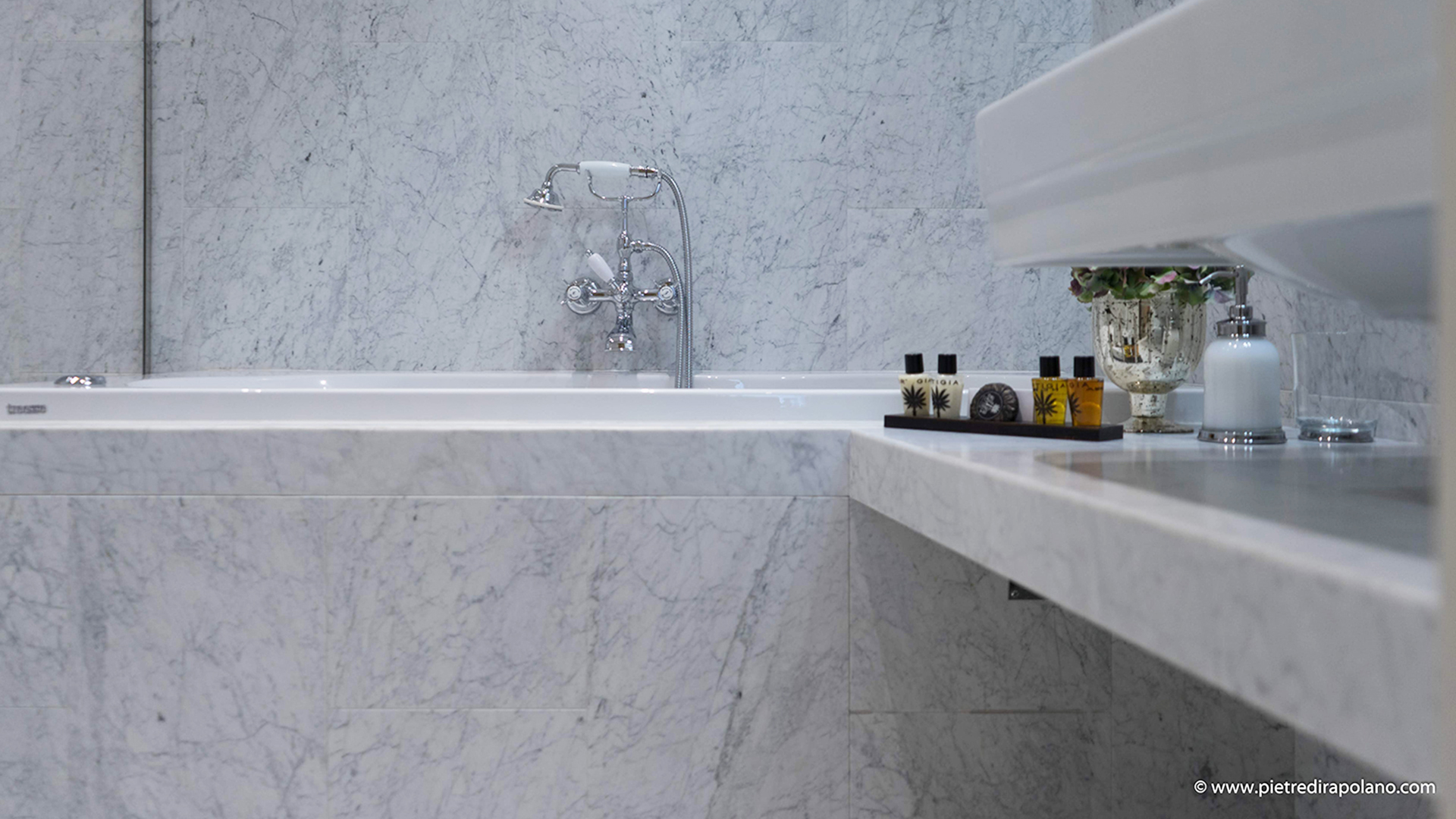 Для очистки этого продукта всегда используйте нейтральное мыло. Не используйте средство для удаления накипи, чтобы не повредить отделку поверхности. Мрамор, камни и травертин состоят из большого количества карбоната кальция, который может подвергаться воздействию кислотных продуктов.