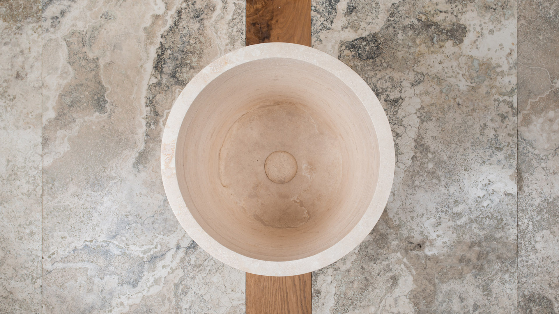 Для очистки этого продукта всегда используйте нейтральное мыло. Не используйте средство для удаления накипи, чтобы не повредить отделку поверхности. Мрамор, камни и травертин состоят из большого количества карбоната кальция, который может подвергаться воздействию кислотных продуктов.