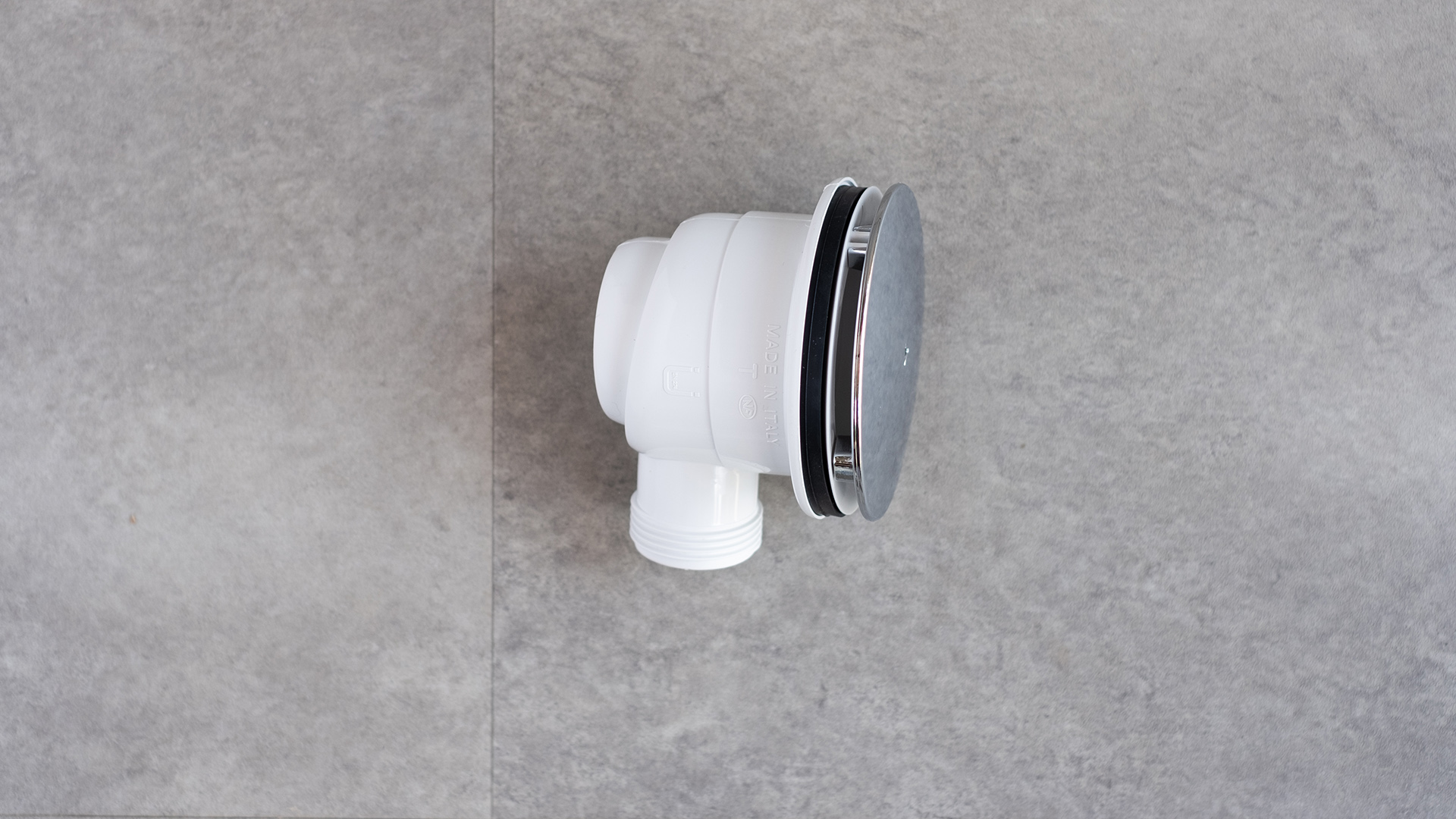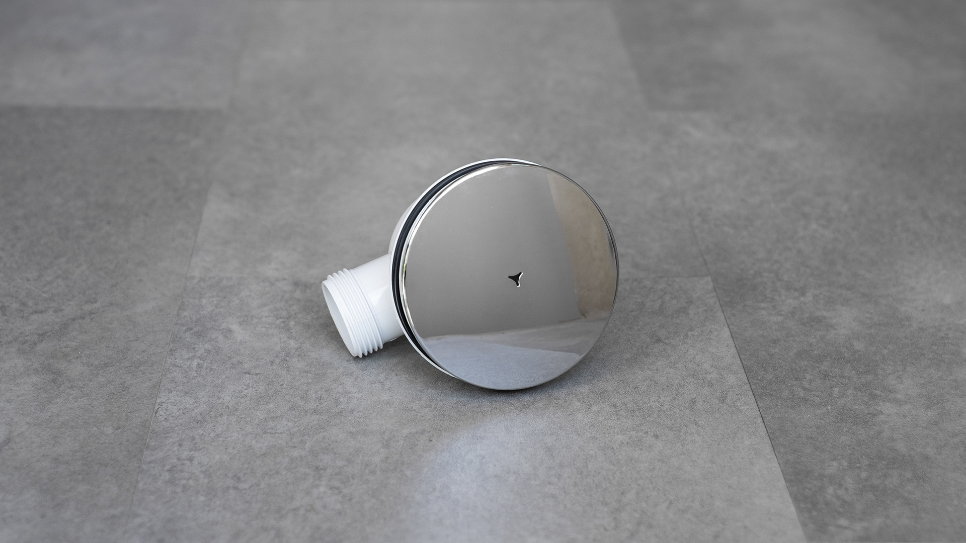 Сифонный слив из полипропилена для душевого поддона с отверстием ø90, из нержавеющей стали с хромированным покрытием.