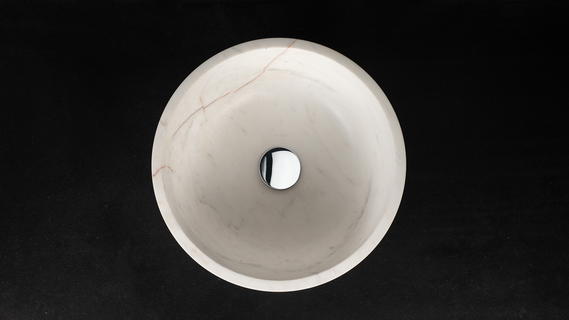 Умывальник для ванной из белого мрамора, тип Белая Альба , круглой формы.