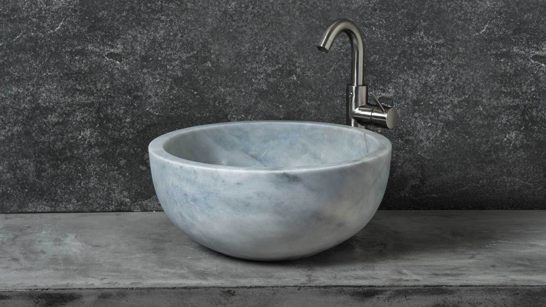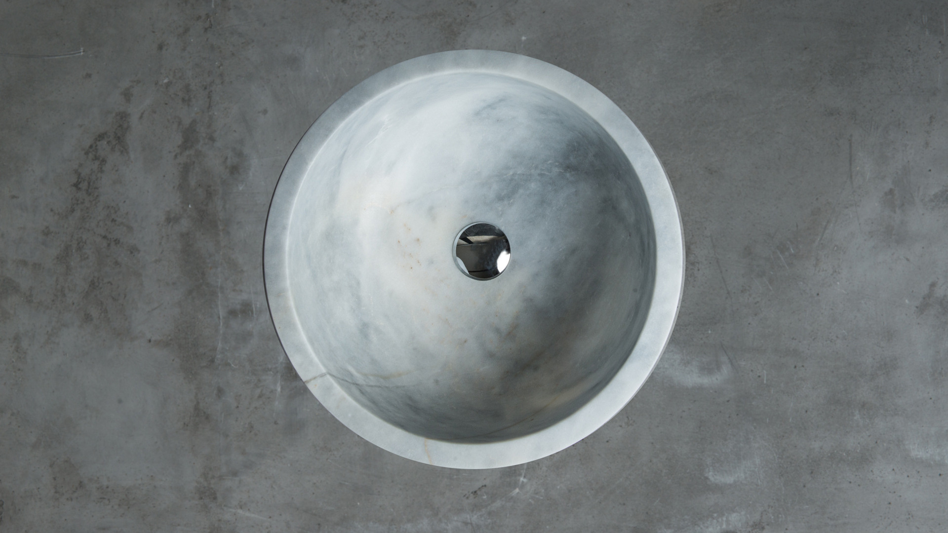 Умывальник для ванной из серого мрамора, тип Bardiglio, круглой формы. Уникальные оттенки от серого до белого делают его элегантным и современным.