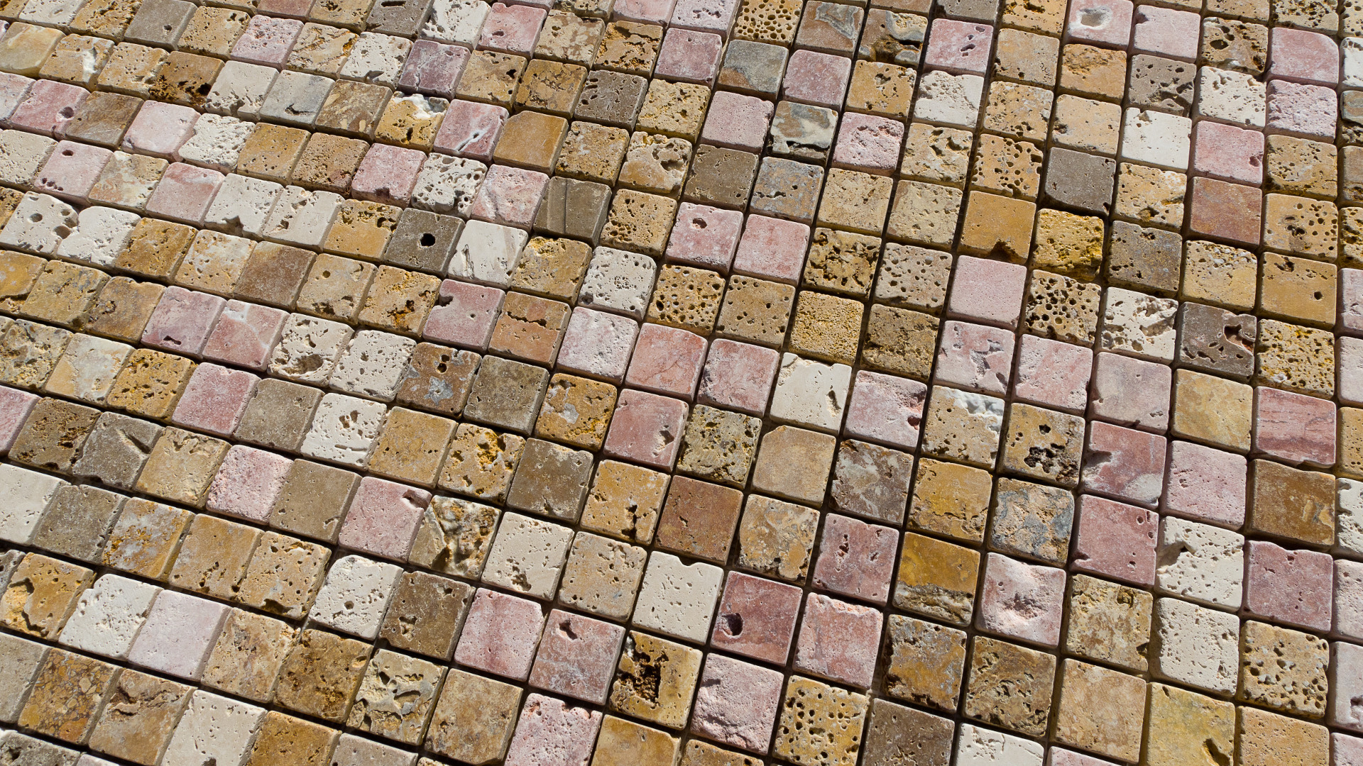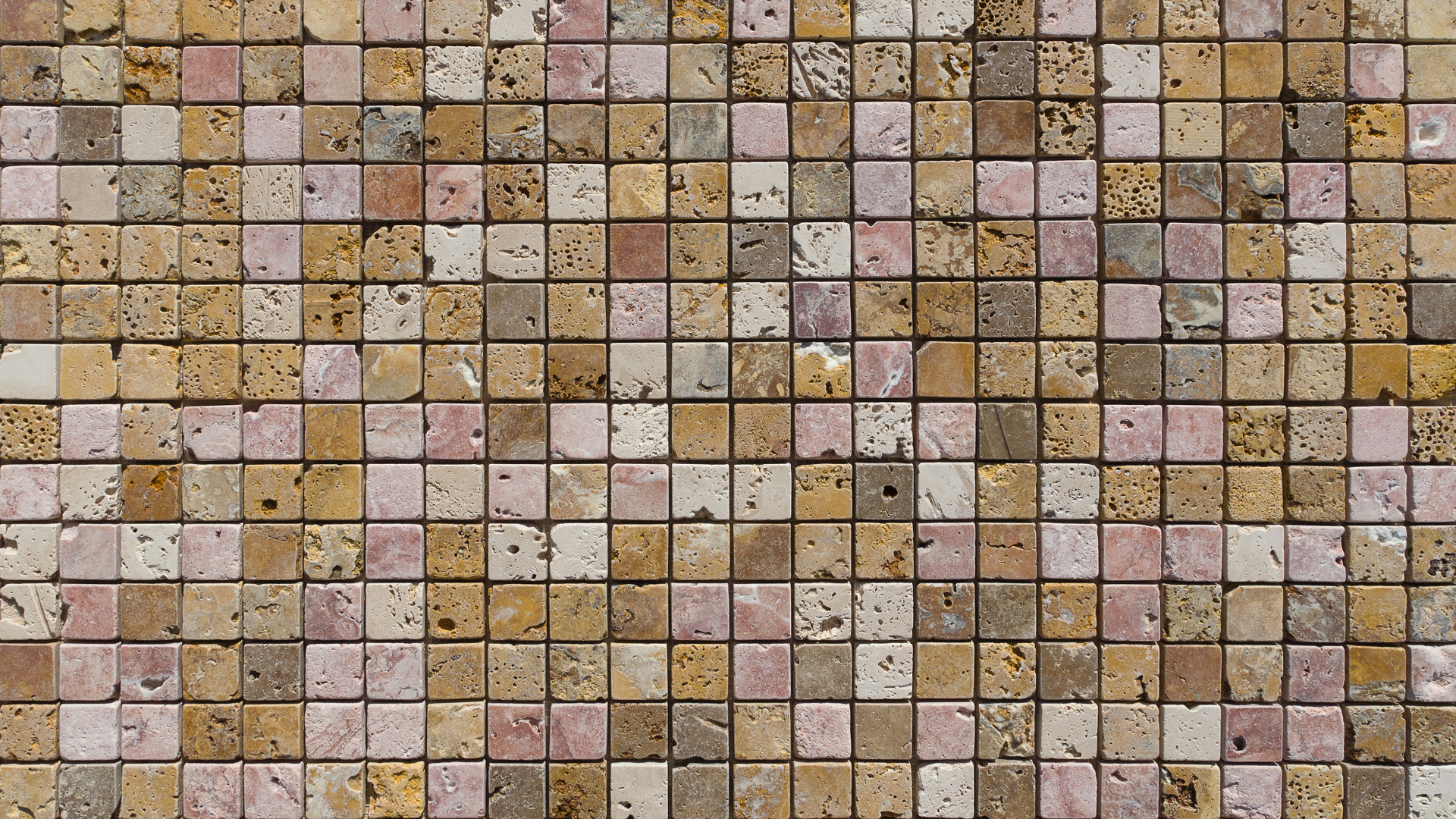 Мозаика из травертина «Коралловый микс 3×3см» Рустик
