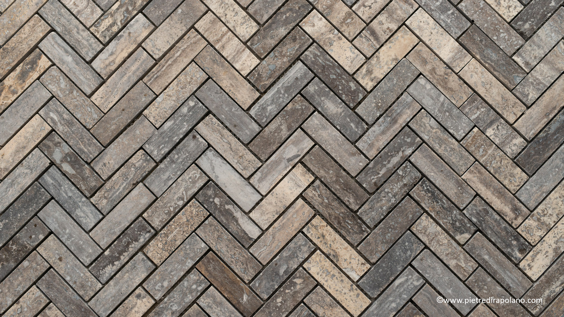 ПРОБКА МАЛЕНЬКАЯ ЗЕБРА ЧЕРНАЯ сделано из кусочков травертина PDR055 Зебра Черная представляет собой мозаику, закрепленную на сетке из плиток 7,5 x 2 x 1 см, уложенных в виде рыбьей кости.