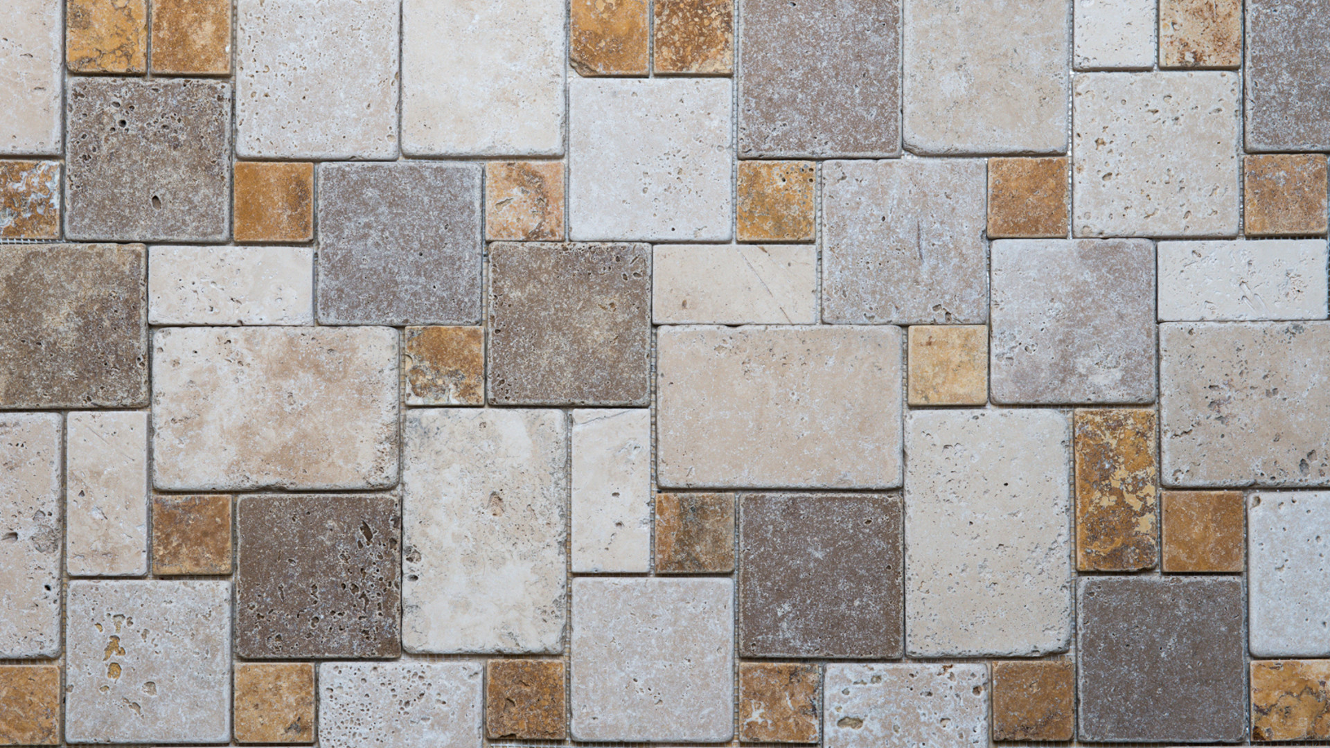 Используемая плитка представляет собой смесь травертина от бежевого до коричневого с кусочками желтой охры. Форматы: 4,8 x 4,8 | 4,8 x 10,0 | 10,0 x 10,0 | 10,0 х 15,0 см.
