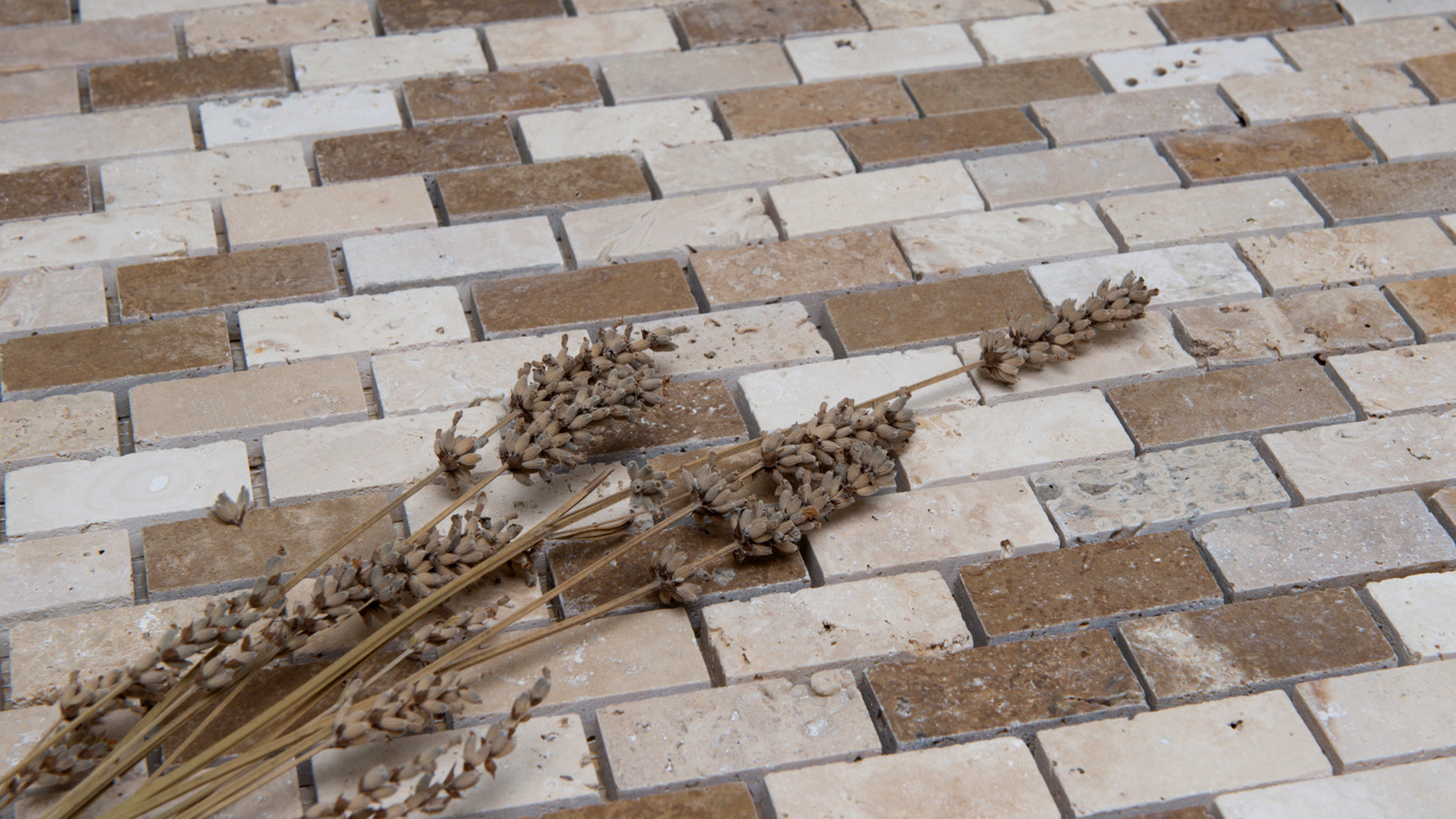 Красота природный камень он также находится в бесконечные оттенки цвета имеется в наличии. Для этой мозаики из травертина мы решили использовать смесь тонов, которую мы называем «Микс Тосканы». Плитка, из которой он состоит, имеет прямоугольную форму 25 х 50 мм.