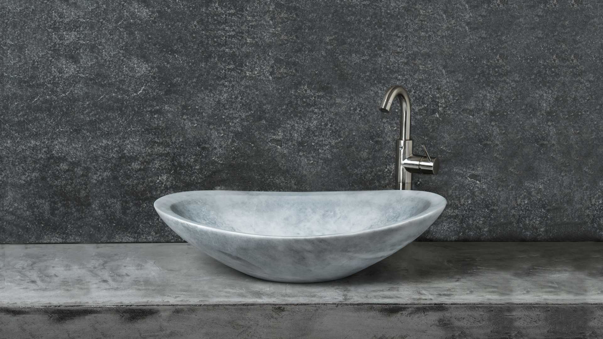 Раковина из серого мрамора Бардиглио для столешницы. Дизайн представляет собой обновленную версию классической овальной формы Ovetto.
