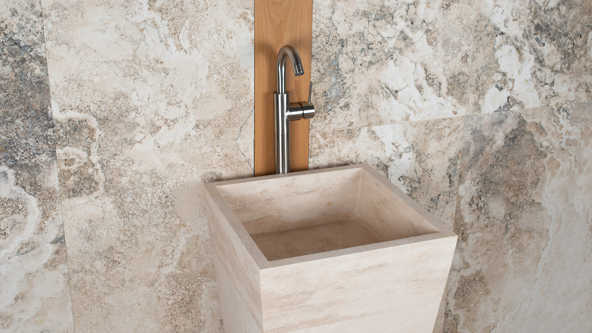 Для очистки этого продукта всегда используйте нейтральное мыло. Не используйте средство для удаления накипи, чтобы не повредить отделку поверхности. Мрамор, камни и травертин состоят из большого количества карбоната кальция, который может подвергаться воздействию кислотных продуктов.