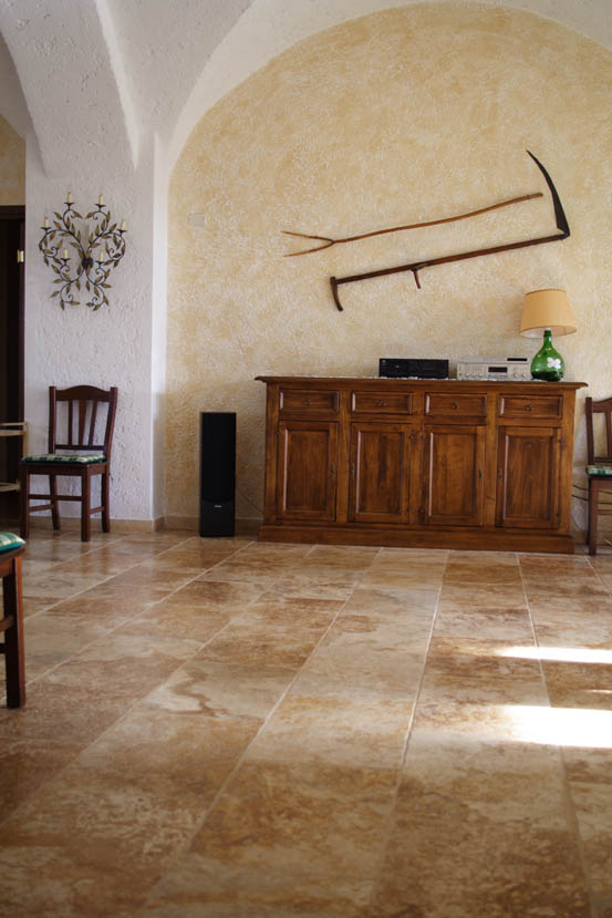 Сельская местность(Сколотые края) Материал получился рустикальным благодаря сколам нервюр. Полы имеют старинный и ухоженный вид, как в старых фермерских домах на Крите Сенези.