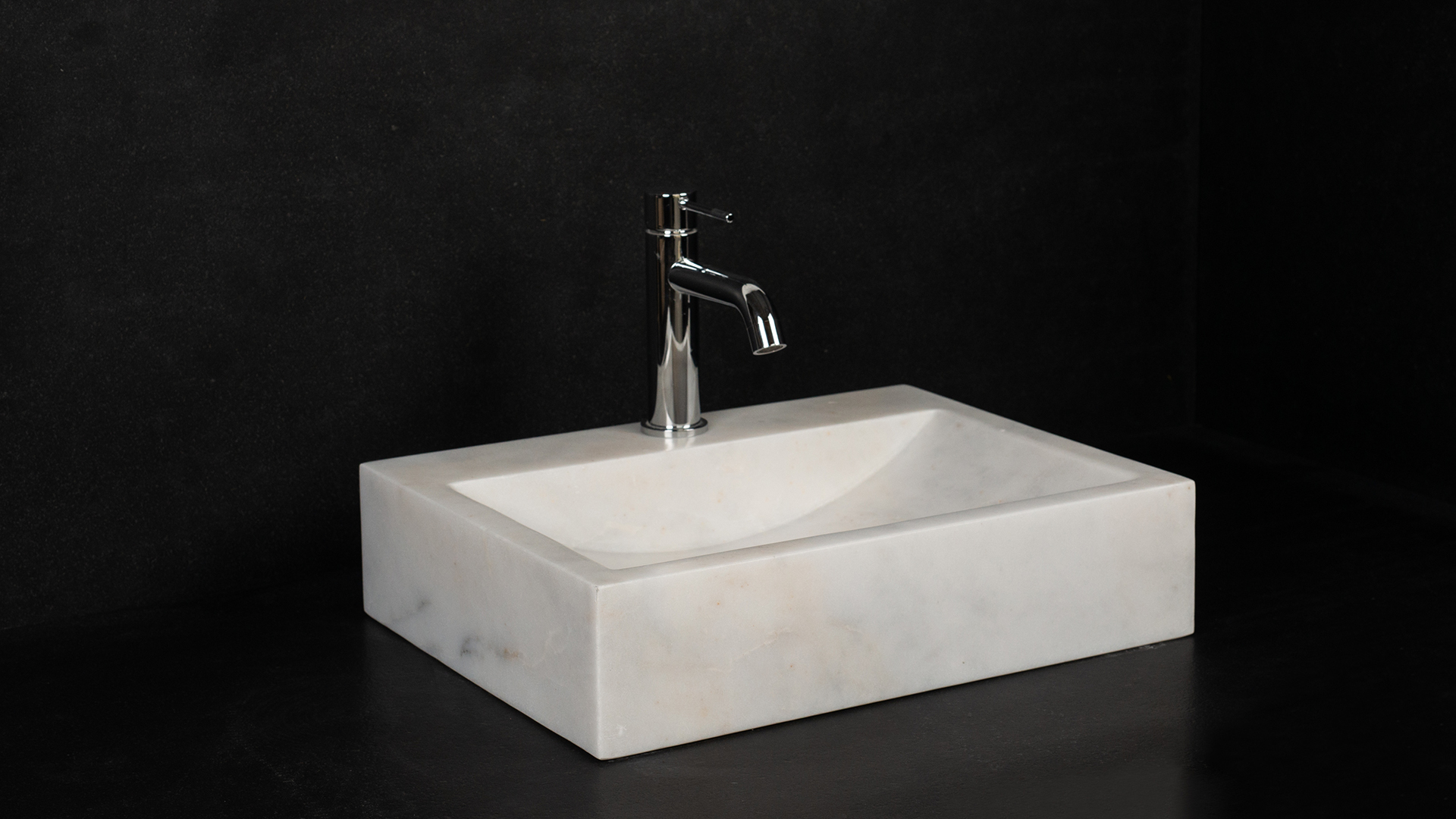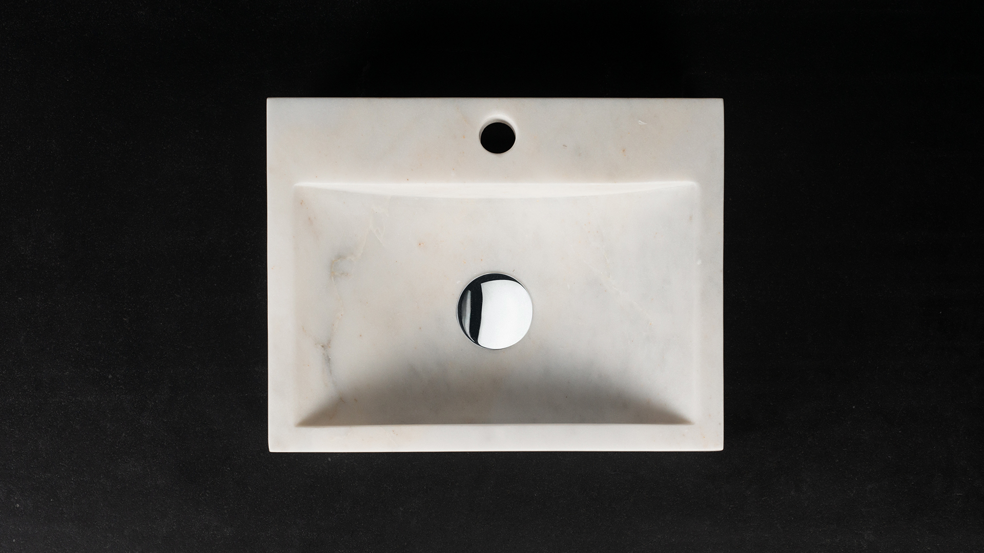 Умывальник маленький мраморный « Белый CT «блестящий. Небольшой размер и квадратная форма делают его особенно подходящим для использования в небольшой, но элегантной ванной комнате, например, в служебной ванной, примыкающей к столовой.