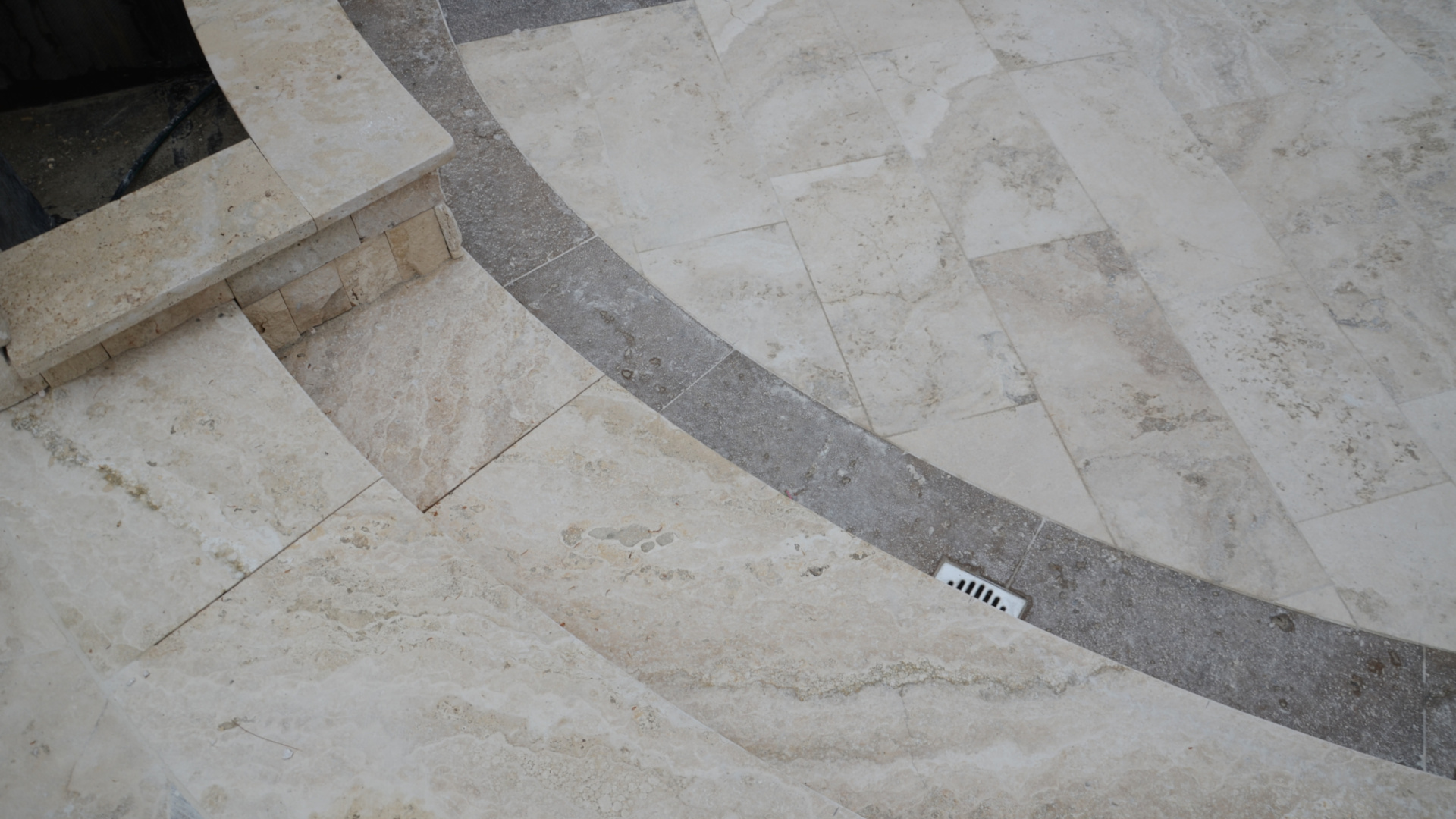 Пьетре ди Раполано предоставил травертин, используемый для покрытия полов, прилегающих к бассейну, и для конструкции краев самого бассейна.