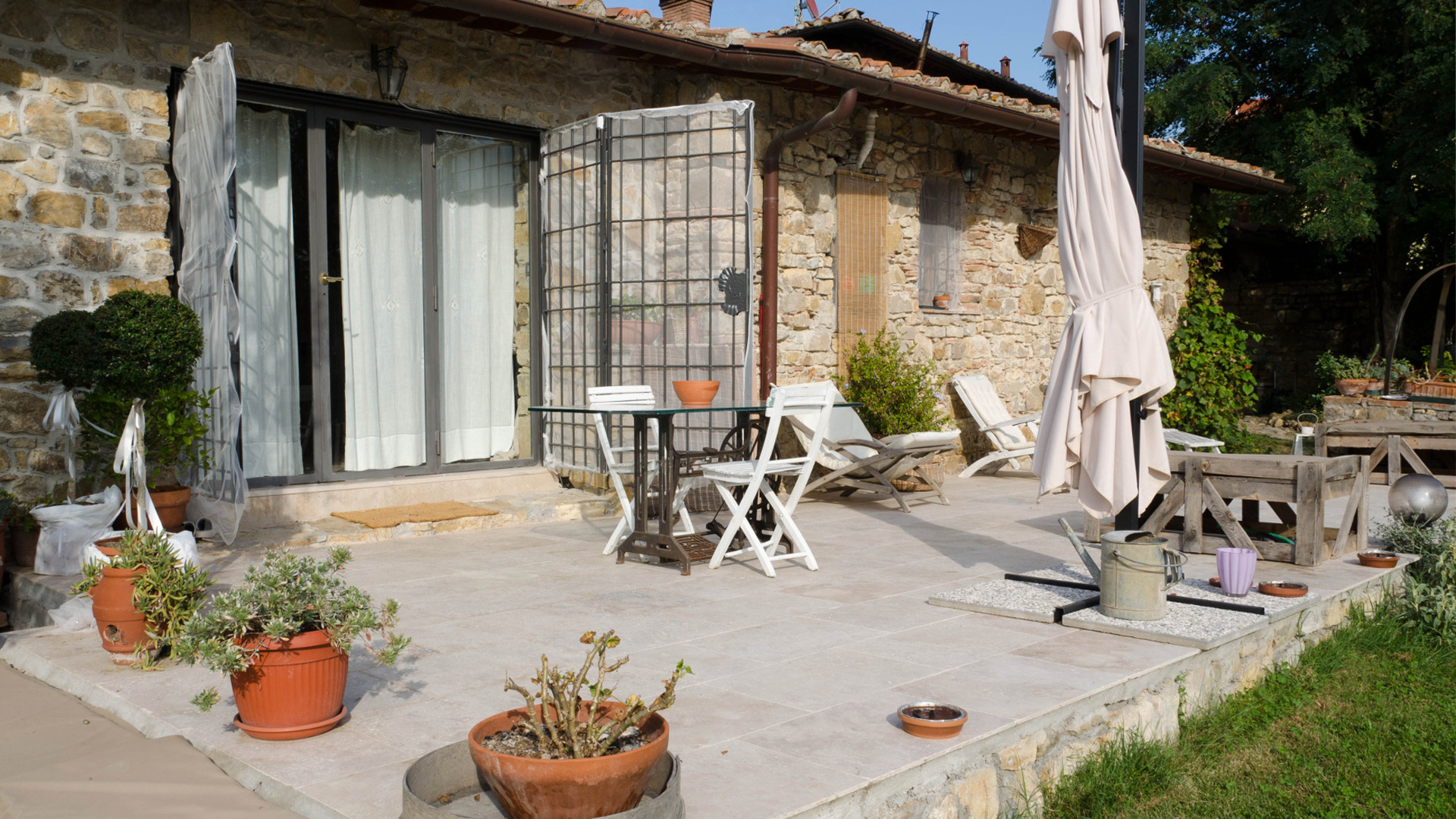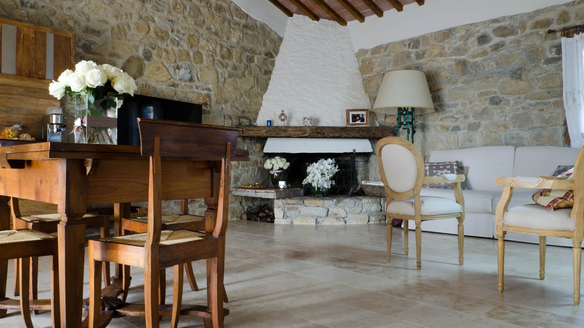 Великолепный фермерский дом на тосканских холмах , недалеко от Импрунета, был отделан с использованием полов Pietra di Rapolano как для интерьеров, так и для экстерьеры.