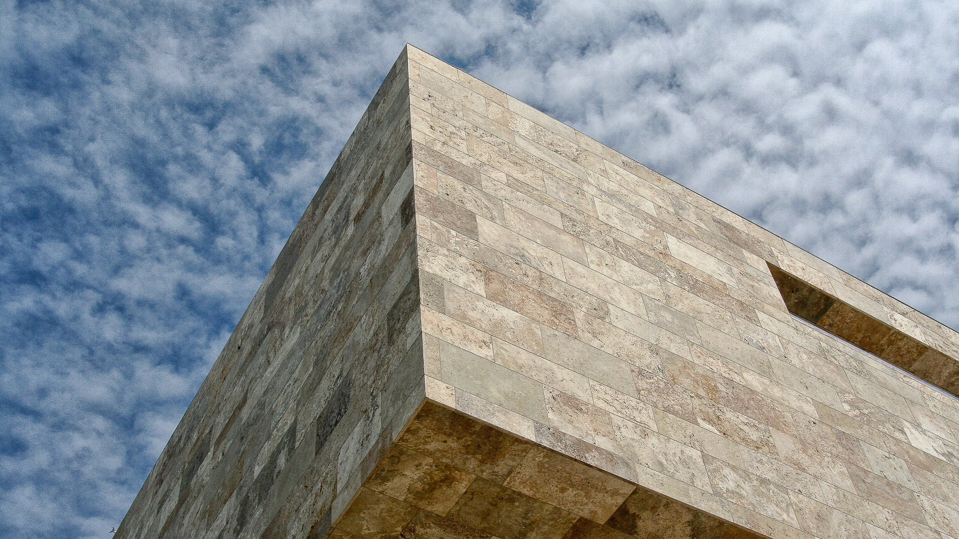 Окончательный эффект впечатляет : текстуры и цвета сельской местности Тосканы выделяются на внушительном фасаде, определяя образ всей архитектуры. . Использование травертина также было превосходным с технической точки зрения, несмотря на то, что во Франкфурте преобладает континентальный климат с жарким летом и суровым климатом. ледяные зимы, так как травертин имеет отличную стойкость .